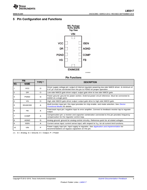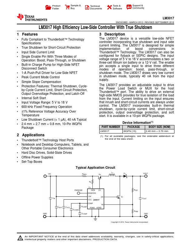 Product Folder Sample & Buy Technical Documents Tools & Software Support & Community LM3017 SNOSC66D * MARCH 2012 * REVISED SEPTE.