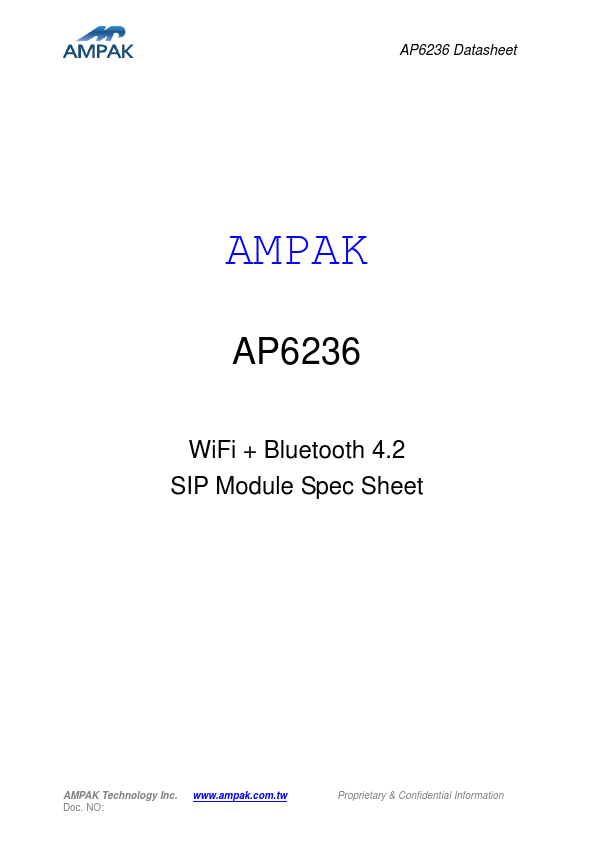 The AP6236 by AMPAK is a WiFi + Bluetooth 4.2 SIP Module. Below is the official datasheet preview.