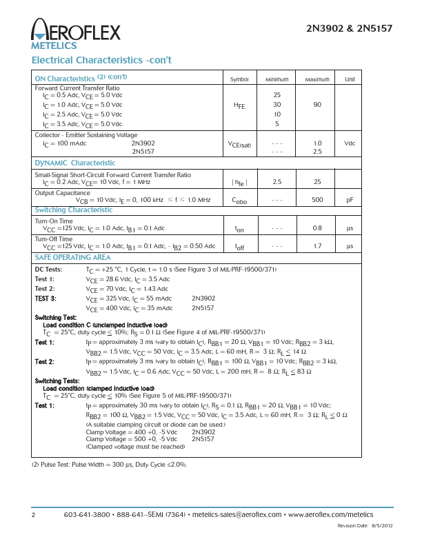 NPN High Power Silicon Transistors 2N3902 & 2N5157 .2N5157 Features