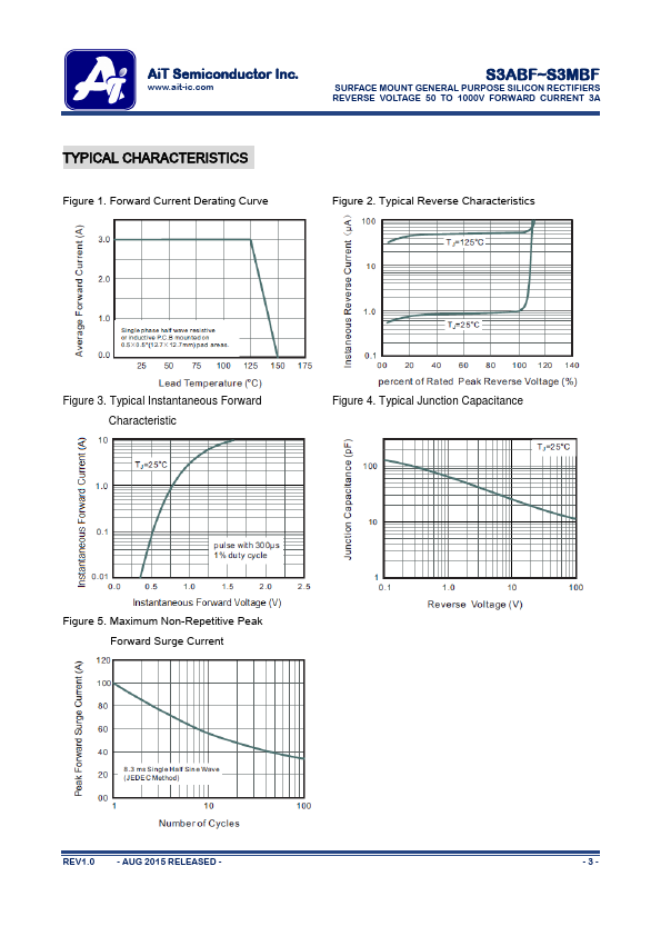 AiT Semiconductor Inc.www.ait-ic.com S3ABF~S3MBF SURFACE MOUNT GENERAL PURPOSE SILICON RECTIFIERS REVERSE VOLTAGE 50 TO 1000V FORWARD CURRENT 3A DE.Features