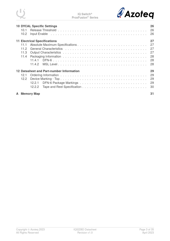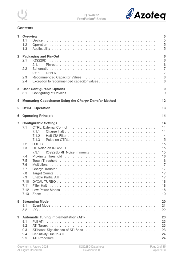 Datasheet Details Part number IQS228D Manufacturer Azoteq File Size 524.62 KB Datasheet IQS228D-Azoteq.pdf Description Single Channel Capacitive Proximity and Touch Controller