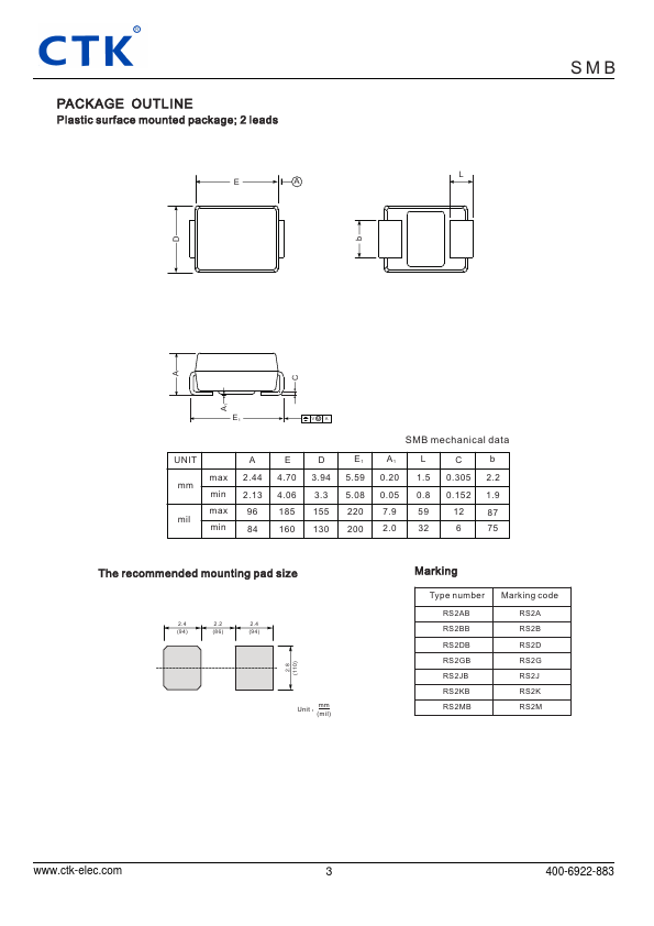 • RS2KBG - Surface Mount Fast Recovery Rectifiers (SHIKUES)