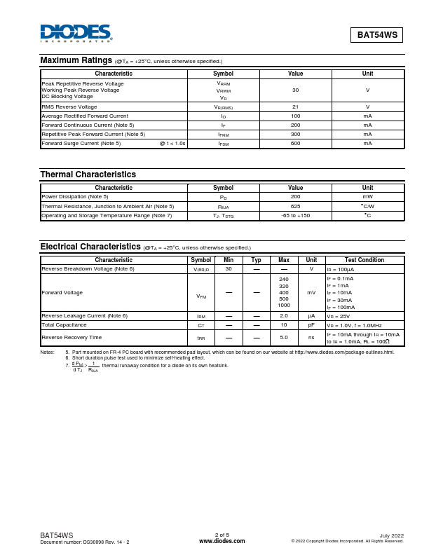 * The DIODES™ BAT54WSQ is suitable for automotive
