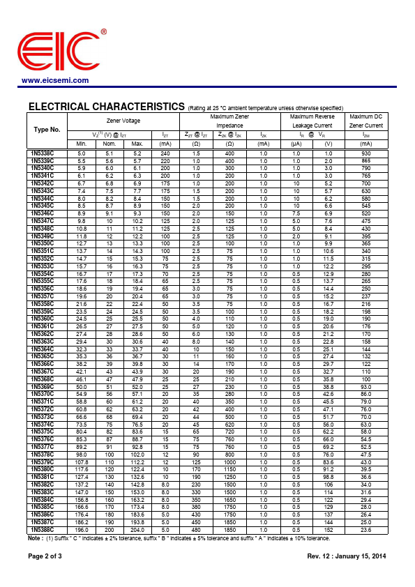- This datasheet PDF includes multiple part numbers: 1N5372C, 1N5338C.