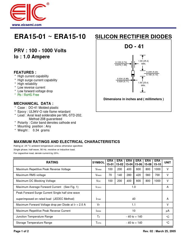 - This datasheet PDF includes multiple part numbers: ERA15-02, ERA15-01.