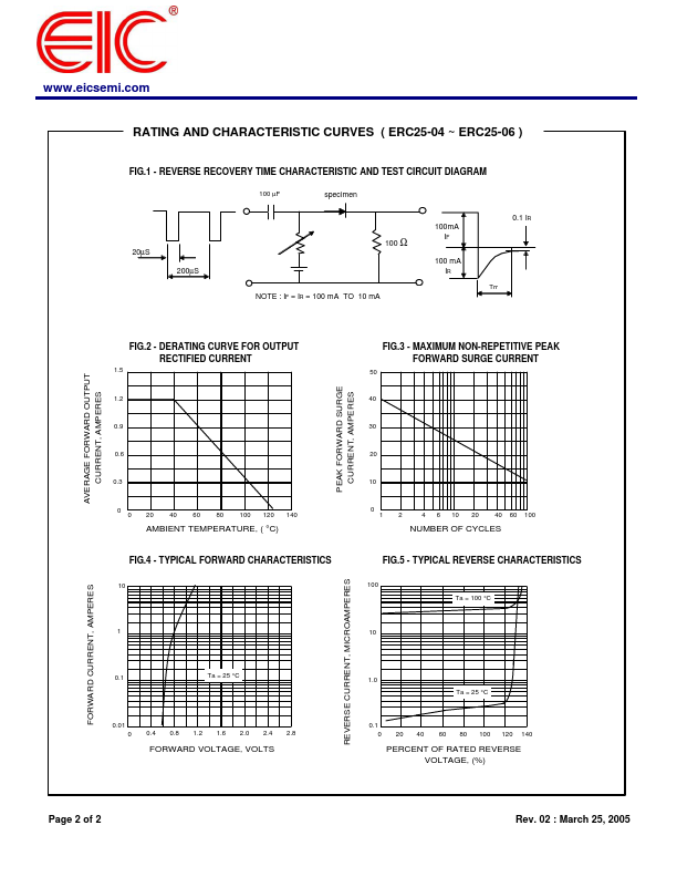 www.eicsemi.com ERC25-04 ~ ERC25-06 PRV : 400 ~ 600 Volts Io : 1.2 Amperes .ERC25-04 Features