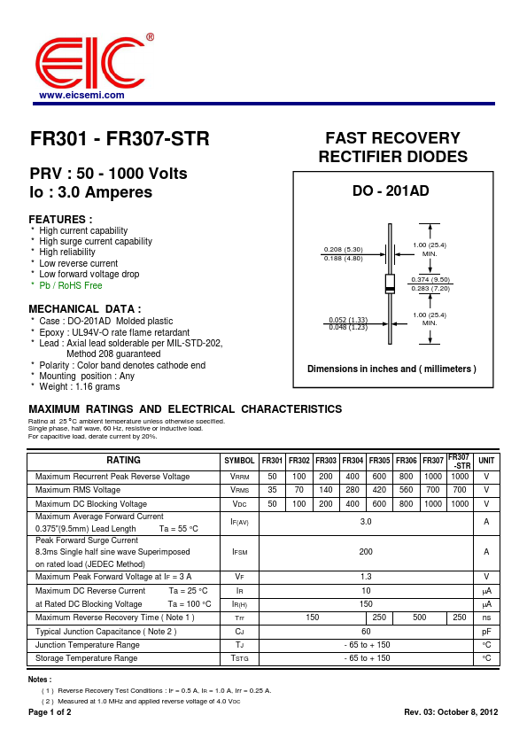 - This datasheet PDF includes multiple part numbers: FR307-STR, FR301.
