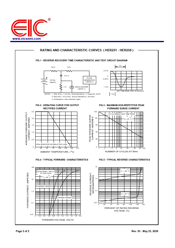 www.eicsemi.com HER251 - HER258 PRV : 50 - 1000 Volts Io : 2.5 Amperes .HER251 Features