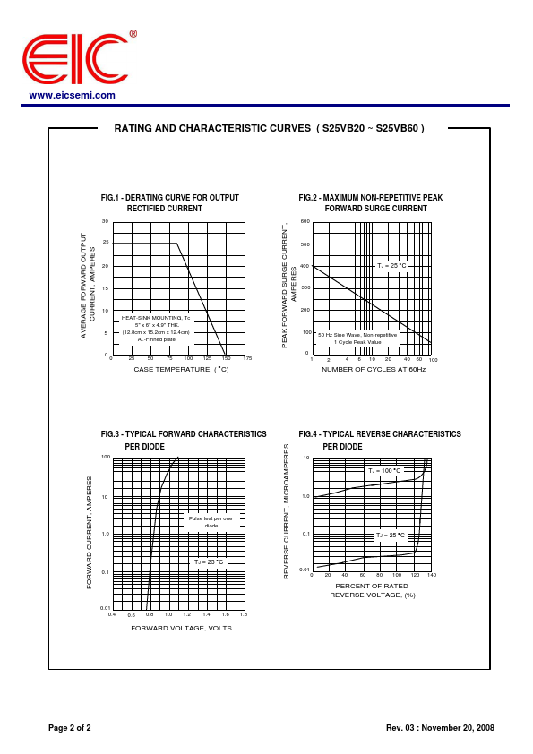 www.eicsemi.com S25VB20 ~ S25VB60 PRV : 200 ~ 600 Volts Io : 25 Amperes SILICON BRIDGE RECTIFIERS BR50 0.728(18.50) 0.688(17.40) .S25VB20 Features