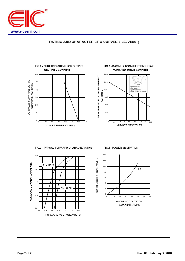 www.eicsemi.com S50VB80 SILICON BRIDGE RECTIFIER PRV : 800 Volts Io : 50 Amperes BR50 0.728(18.50) 0.688(17.40) .S50VB80 Features