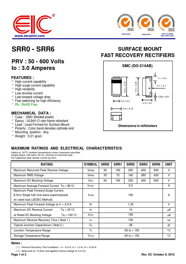 - SURFACE MOUNT FAST RECOVERY RECTIFIERS
