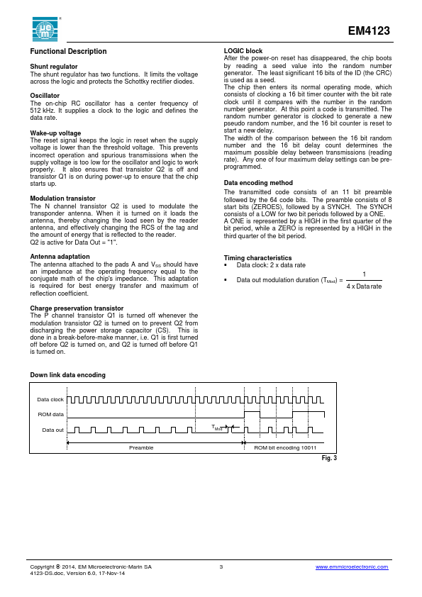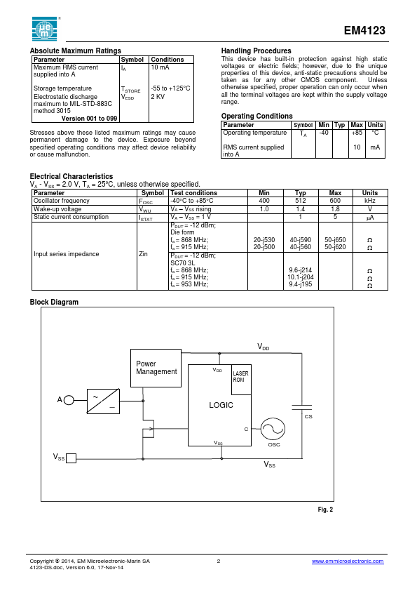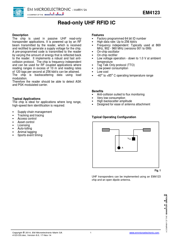 EM MICROELECTRONIC - MARIN SA Read-only UHF RFID IC EM4123 .Features