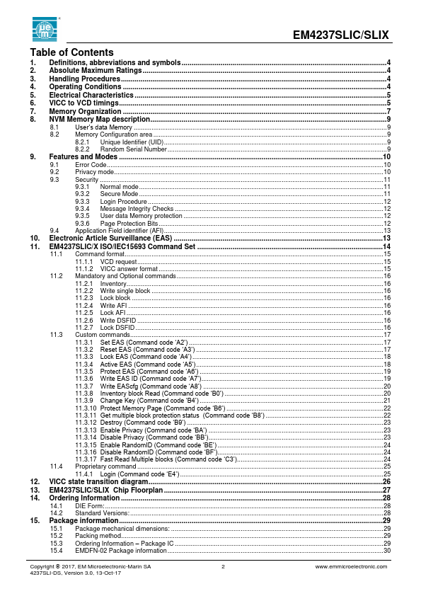 - This datasheet PDF includes multiple part numbers: EM4237SLIX, EM4237SLIC.