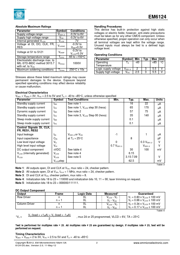 EM Microelectronic EM6124-like datasheet