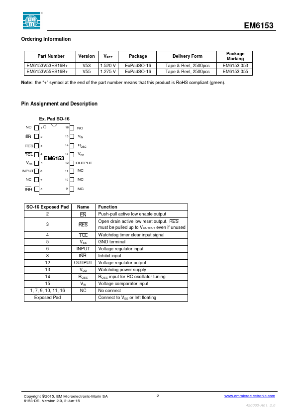 EM MICROELECTRONIC - MARIN SA EM6153 5V Automotive Regulator with Inhibit Input and Windowed Watchdog .