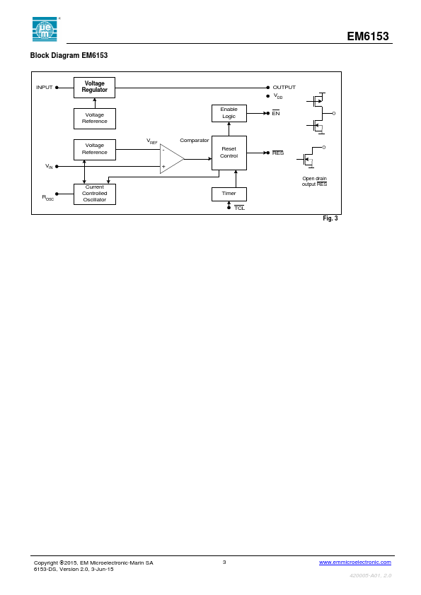 The EM6153 offers a high level of integration by combining voltage regulation, voltage monitoring and software monitoring using a windowed watchdog.