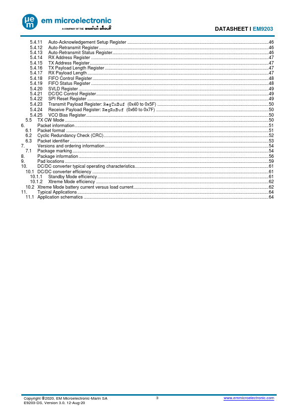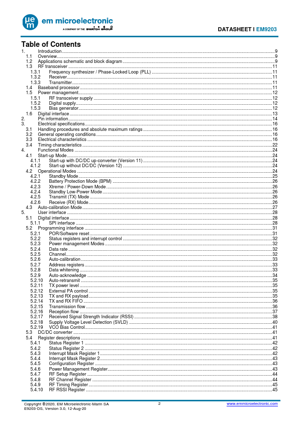 DATASHEET Ɩ EM9203 EM9203: 1Volt, 2Mbps, 2.4GHz GFSK Transceiver .