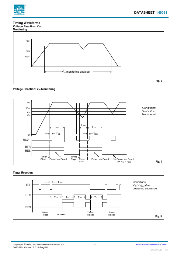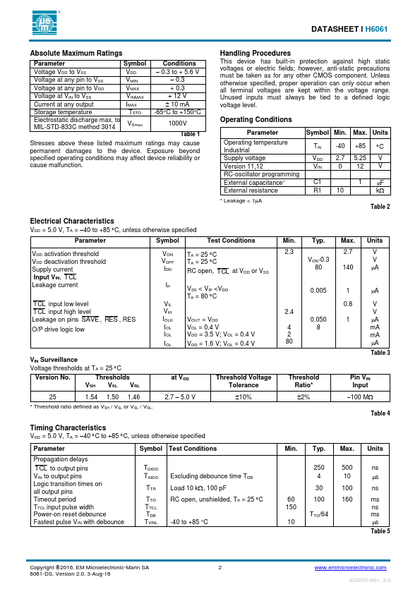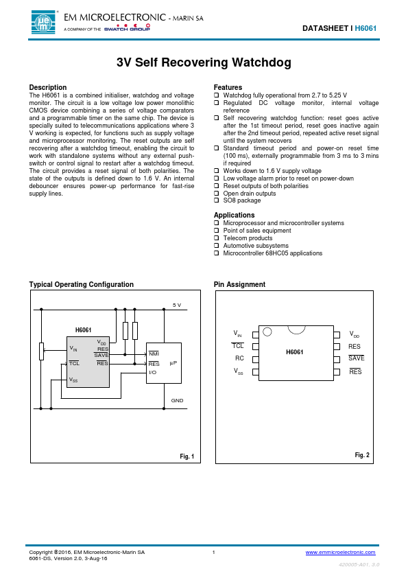 EM MICROELECTRONIC - MARIN SA DATASHEET Ɩ H6061 3V Self Recovering Watchdog .Features