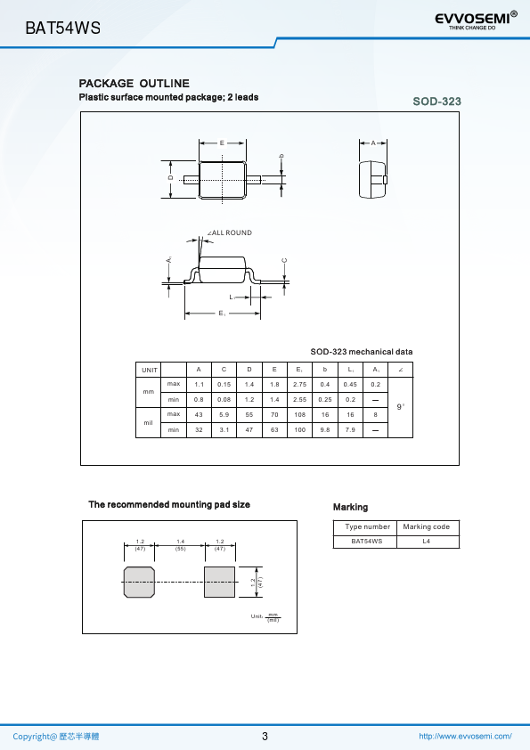 1 Top View Marking Code: L4 Simplified outline SOD-323 and symbol