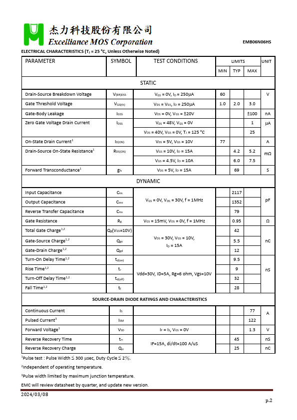 | Part number | EMB06N06HS |