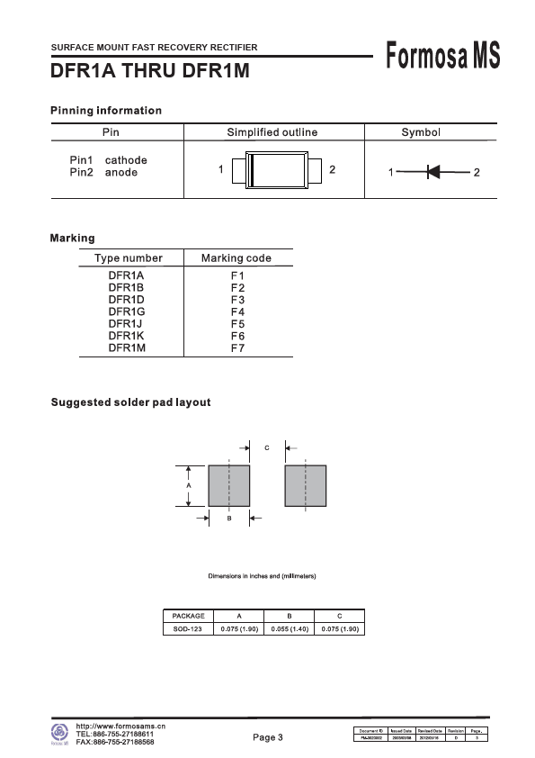 | Description | 1A SURFACE MOUNT FAST RECOVERY RECTIFIER |