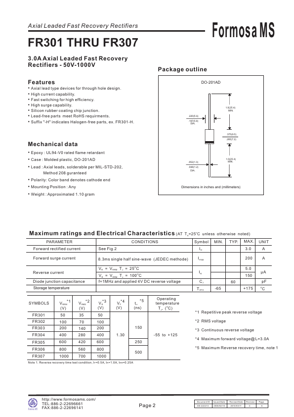 - This datasheet PDF includes multiple part numbers: FR307, FR301.