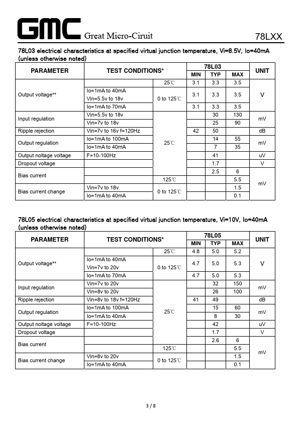GMC Great Micro-Ciruit Product Specification AUSHKXIN Type 78LXX 78LXX .