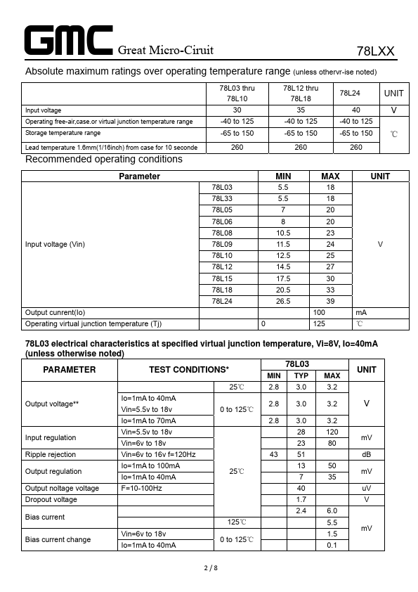 GMC Great Micro-Ciruit Product Specification AUSHKXIN Type 78LXX 78LXX .
