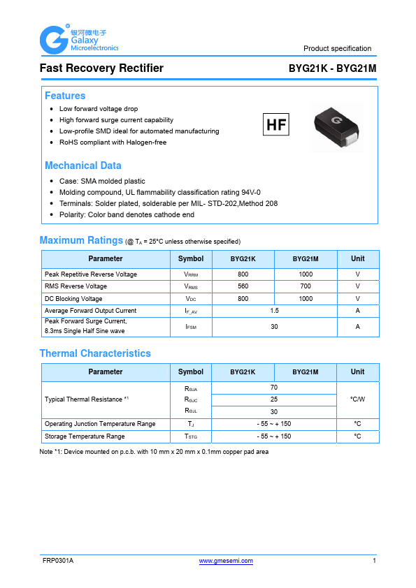 - This datasheet PDF includes multiple part numbers: BYG21M, BYG21K.