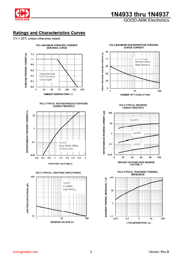 1N4933 thru 1N4937 GOOD-ARK Electronics 1A,50-600V Fast Recovery Rectifiers .Features