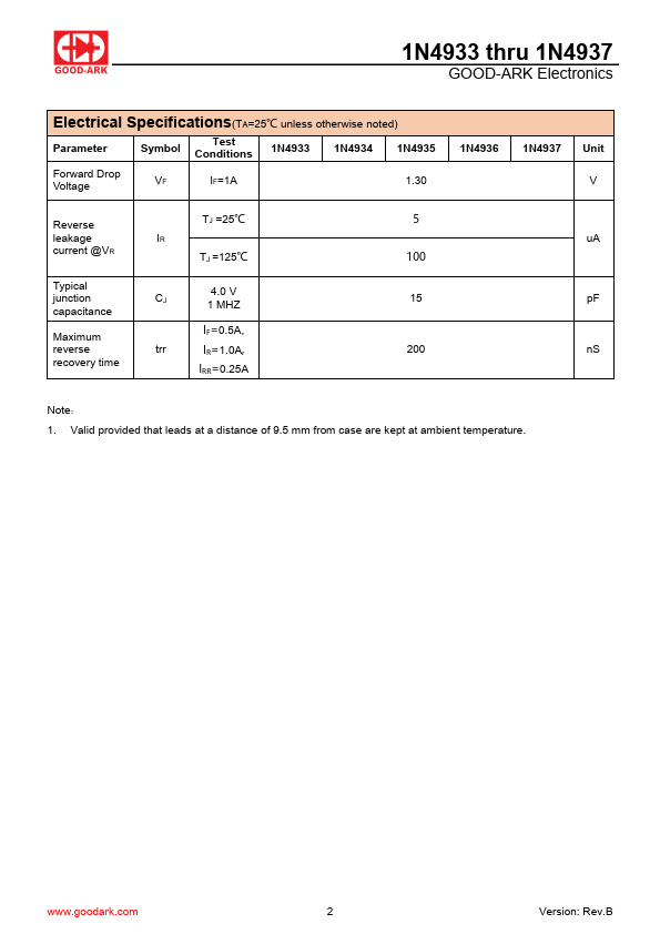 1N4933 thru 1N4937 GOOD-ARK Electronics 1A,50-600V Fast Recovery Rectifiers .