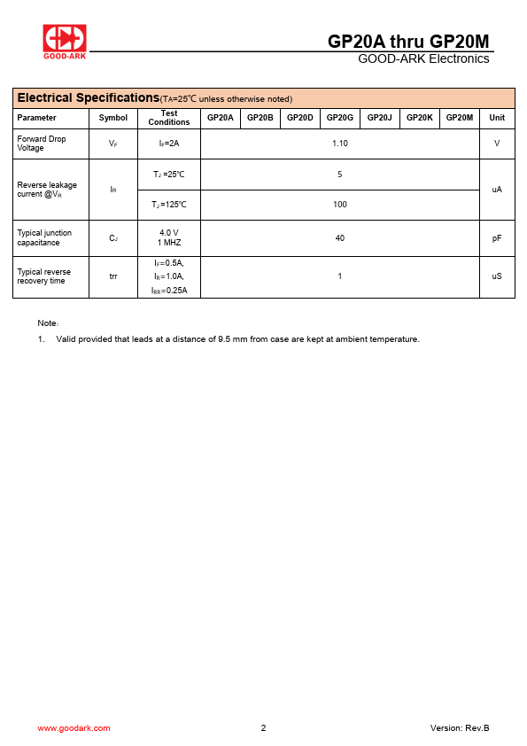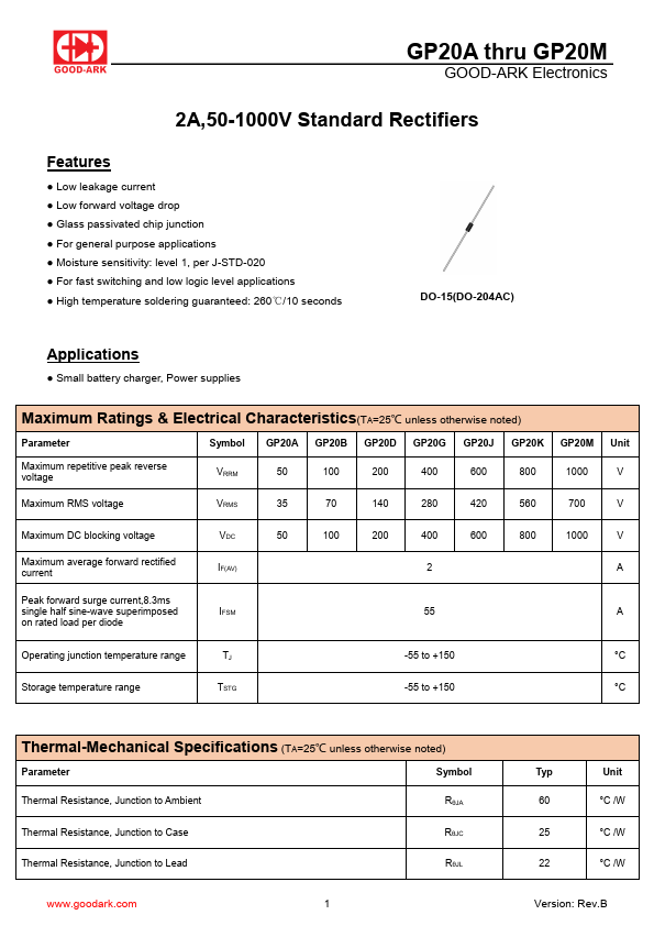 GP20A thru GP20M GOOD-ARK Electronics 2A,50-1000V Standard Rectifiers .