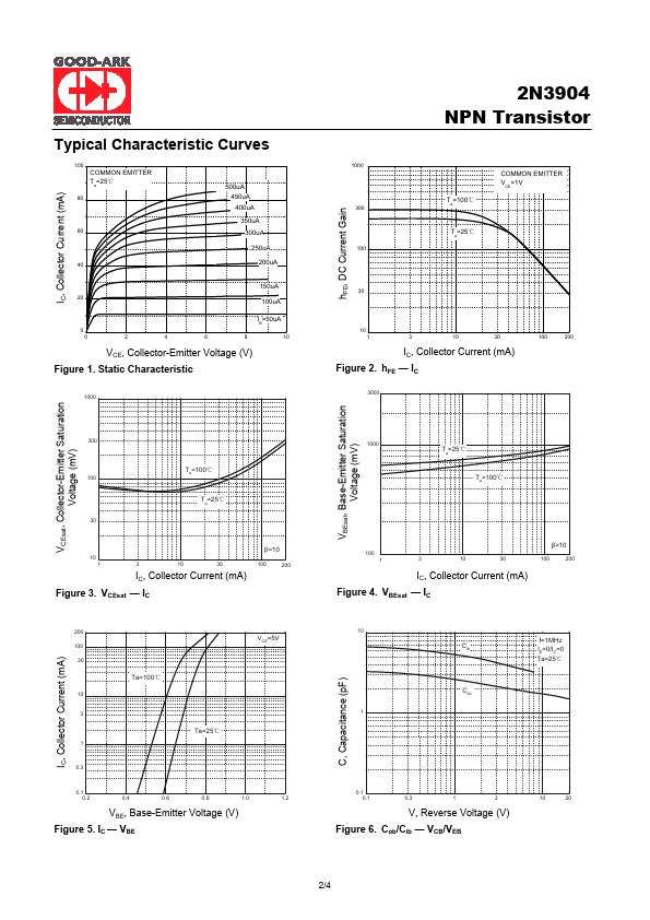 * 2N3904 NPN Transistor 1. EMILTTER 2. BASE 3. COLLECTOR TO-92 Absolute Maximum Ratings (TA=25°C unless otherwise noted) Parameter Symbol Value Collector-Base Voltage VCBO 60 Collector-Emitter Voltage VCEO 40 Emitter-Base Voltage VEBO 6 Collector Current-Continuous IC 0.2 Collector📁 Related Datasheet