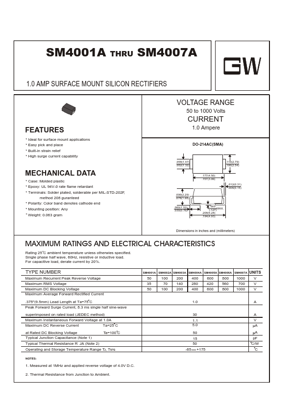 - 1.0 AMP SURFACE MOUNT SILICON RECTIFIERS
