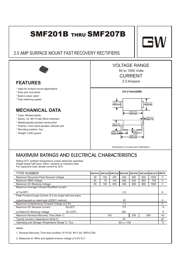 - 2.0 AMP SURFACE MOUNT FAST RECOVERY RECTIFIERS