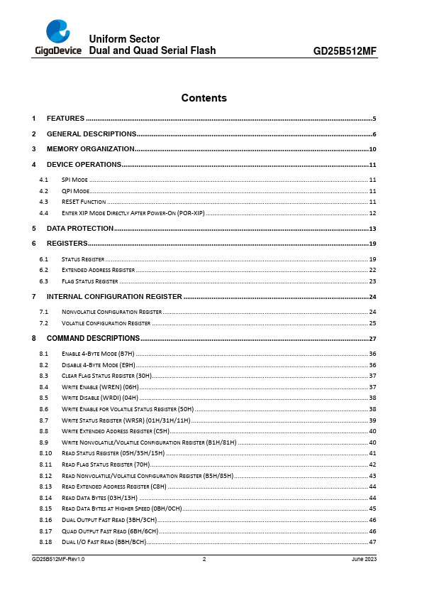 Uniform Sector Dual and Quad Serial Flash GD25B512MF GD25B512MF DATASHEET GD25B512MF-Rev1.0 1 June 2023 Uniform Sector Dual and Quad Serial Flas.