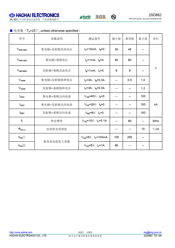 The 2SD882 is a medium power low voltage transistor, designed for audio power amplifier, DC-DC converter and voltage regulator.