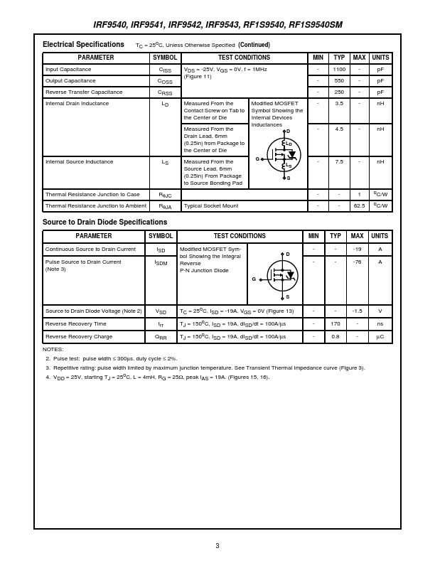 This datasheet PDF includes multiple part numbers: IRF9541, IRF9540. Please refer to the document for exact specifications by model. |