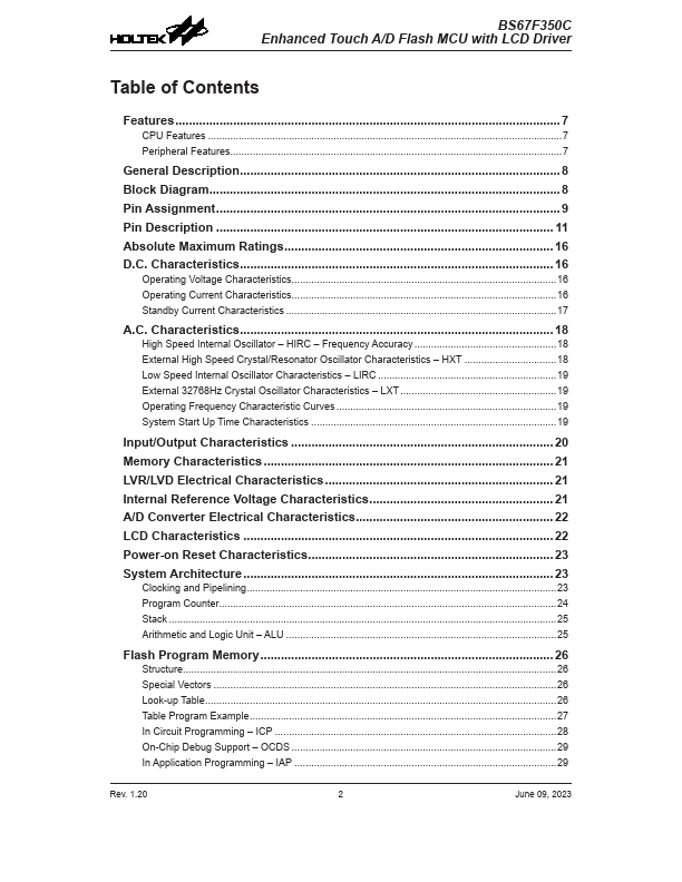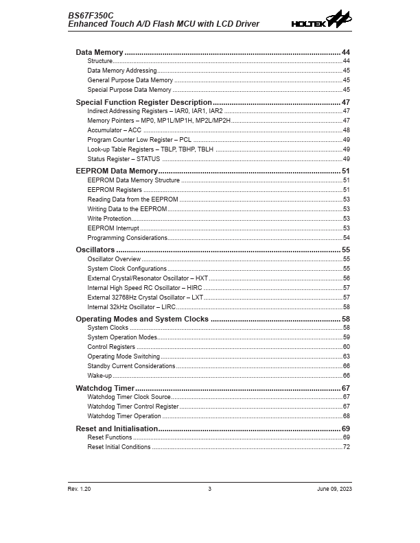 Enhanced Touch A/D Flash MCU with LCD Driver BS67F350C Revision: V1.20 Date: June 09, 2023 BS67F350C Enhanced Touch A/D Flash MCU with LCD Driver Ta.