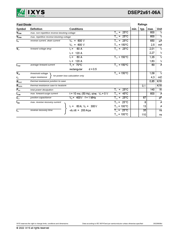 Datasheet Details Part number DSEP2x61-06A Manufacturer IXYS File Size 167.90 KB Datasheet DSEP2x61-06A-IXYS.pdf Description High Performance Fast Recovery Diode