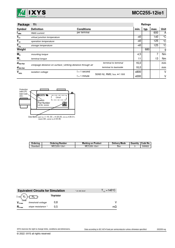 with copper base plate ● Planar passivated chip ● Keyed gate/cathode twin pins