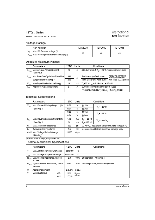 - This datasheet PDF includes multiple part numbers: 12TQ040, 12TQ035.