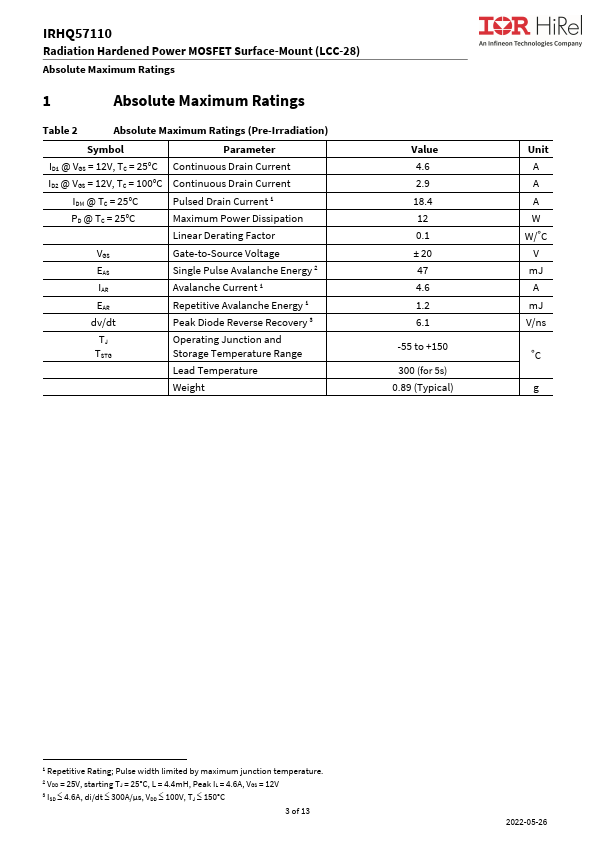 | Part number | IRHQ57110 |