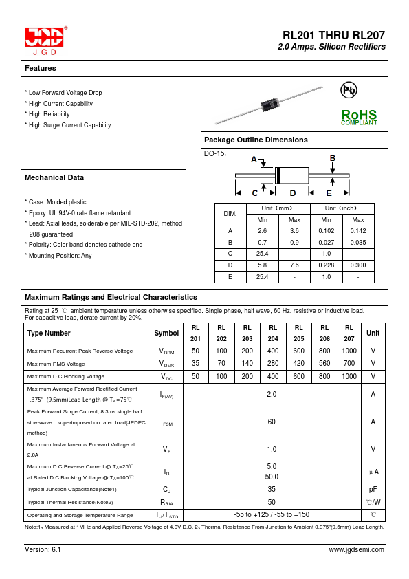 - 2.0 Amps Silicon Rectifiers