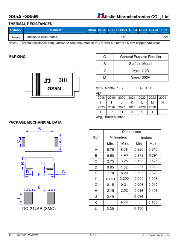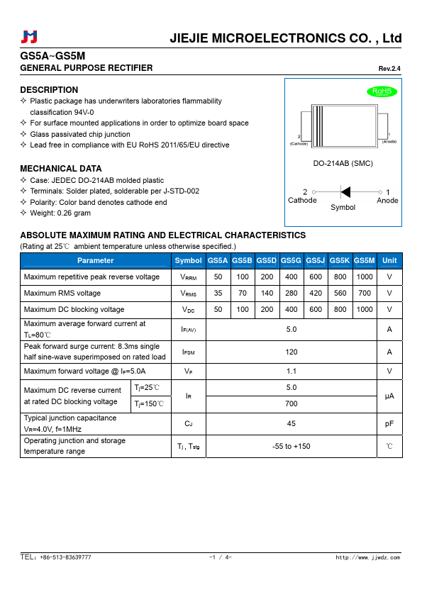 GS5A~GS5M GENERAL PURPOSE RECTIFIER JIEJIE MICROELECTRONICS CO., Ltd Rev.2.4 .