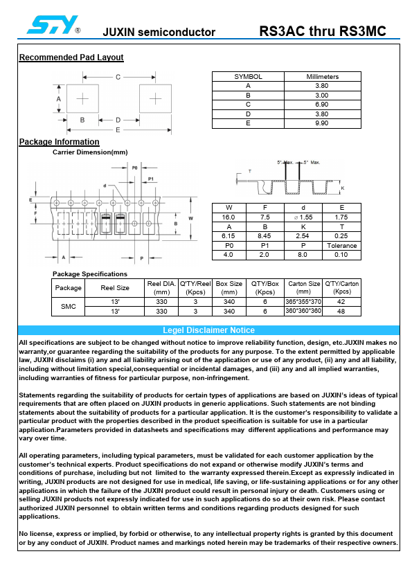JUXIN semiconductor Fast Recovery Surface Mount Rectifiers .Features
