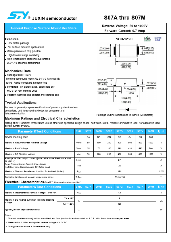 - This datasheet PDF includes multiple part numbers: S07J, S07A.