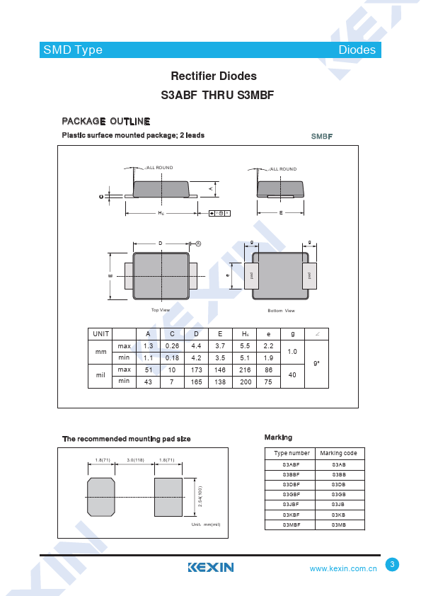 SMD Type Diodes Rectifier Diodes S3ABF THRU S3MBF .S3GBF Distributors