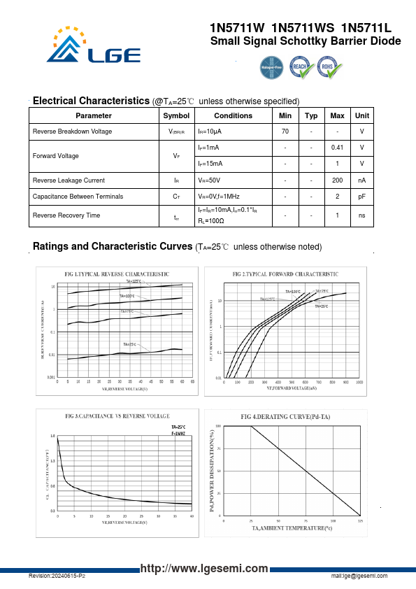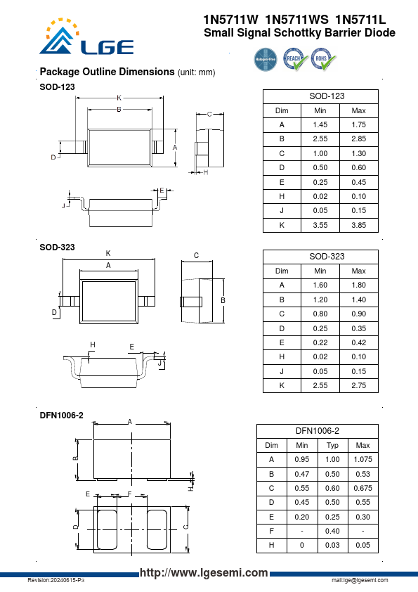 1N5711W 1N5711WS 1N5711L Small Signal Schottky Barrier Diode .Features