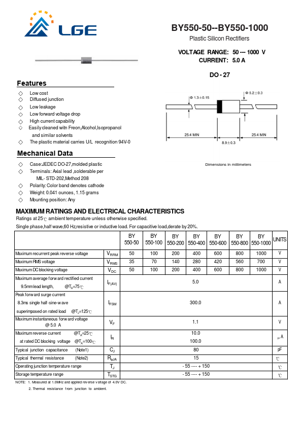 - This datasheet PDF includes multiple part numbers: BY550-100, BY550-50.